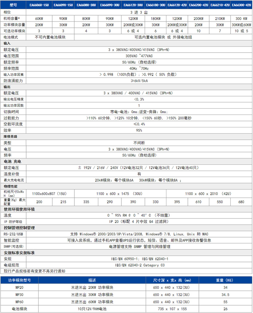 三進三出60/90/120/180/210/300kVA-單模塊20/30/60KW